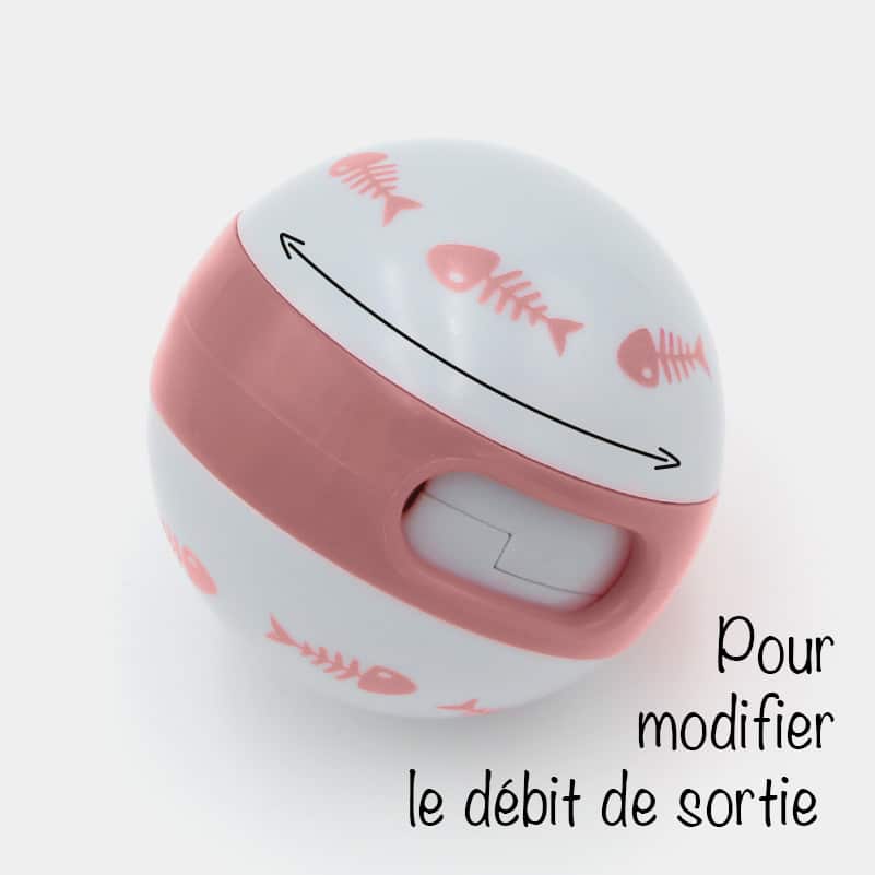 Remplissez la boule de croquettes et réglez l’ouverture de la trappe, par laquelle sortent les croquettes, en fonction du niveau de difficulté souhaité. Proposez-la ensuite à votre chat qui s’amusera à la faire rouler au sol pour en faire sortir les croquettes. Cela permettra de ralentir la prise alimentaire qui contribuera à favoriser la satiété et à maintenir le poids de forme de votre petit compagnon.