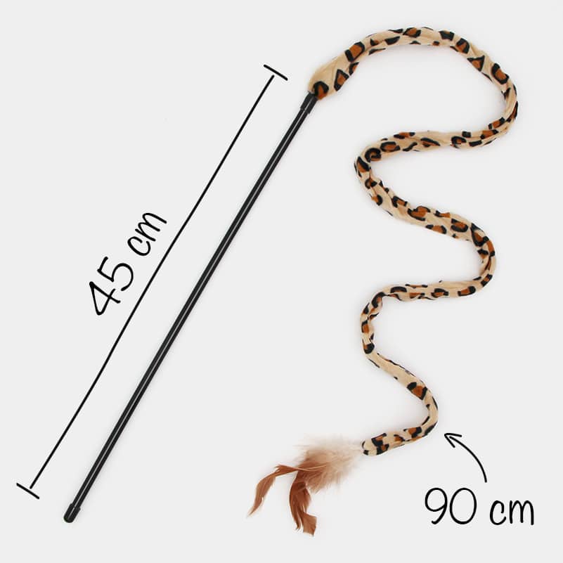 Ce bâton teaser avec queue et plumes pour chat est conçu pour stimuler l’instinct naturel de chasseur de votre félin.