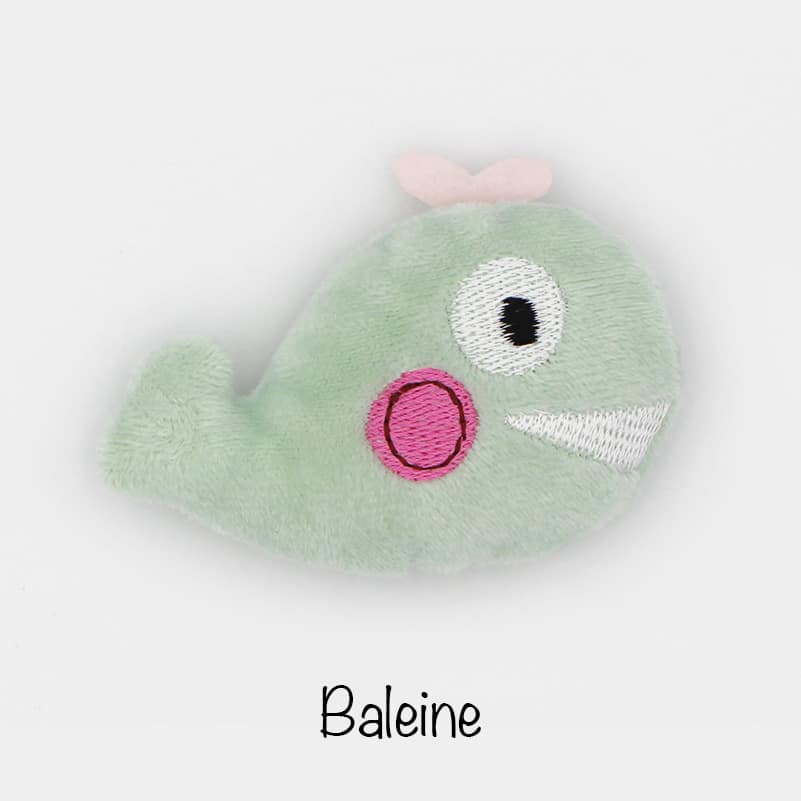 La peluche est disponible sous forme d’oiseau, de baleine, de hérisson, d’âne et d’éléphant.