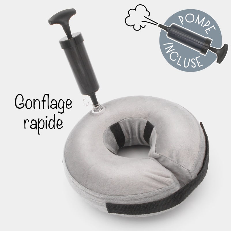 1 • La collerette est équipée d’une valve. Gonflez-la à la bouche ou à l’aide d’une pompe à air.